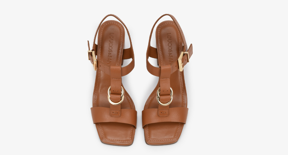 Sandália Dourada Salto Fino Couro Metalizado